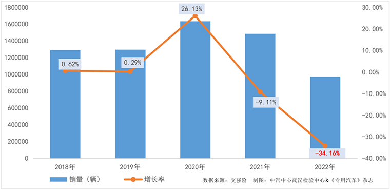 专用汽车销量五年来降幅最大,2022年同比下滑34.16%