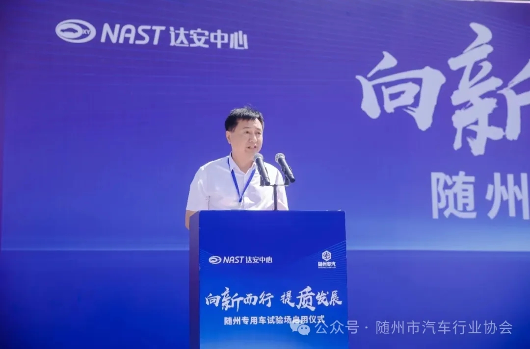 王靳在致辞时说,达安中心与随州市曾都区政府携手打造的“随州专用汽车试验场”,是华中地区首个专用汽车测试场,优质的试验资源赋能一流的产业体系,必将为随州乃至全国专汽转型升级与高质量发展提供强大动能,助力随州乃至全国的合作伙伴向更高处迈进。
